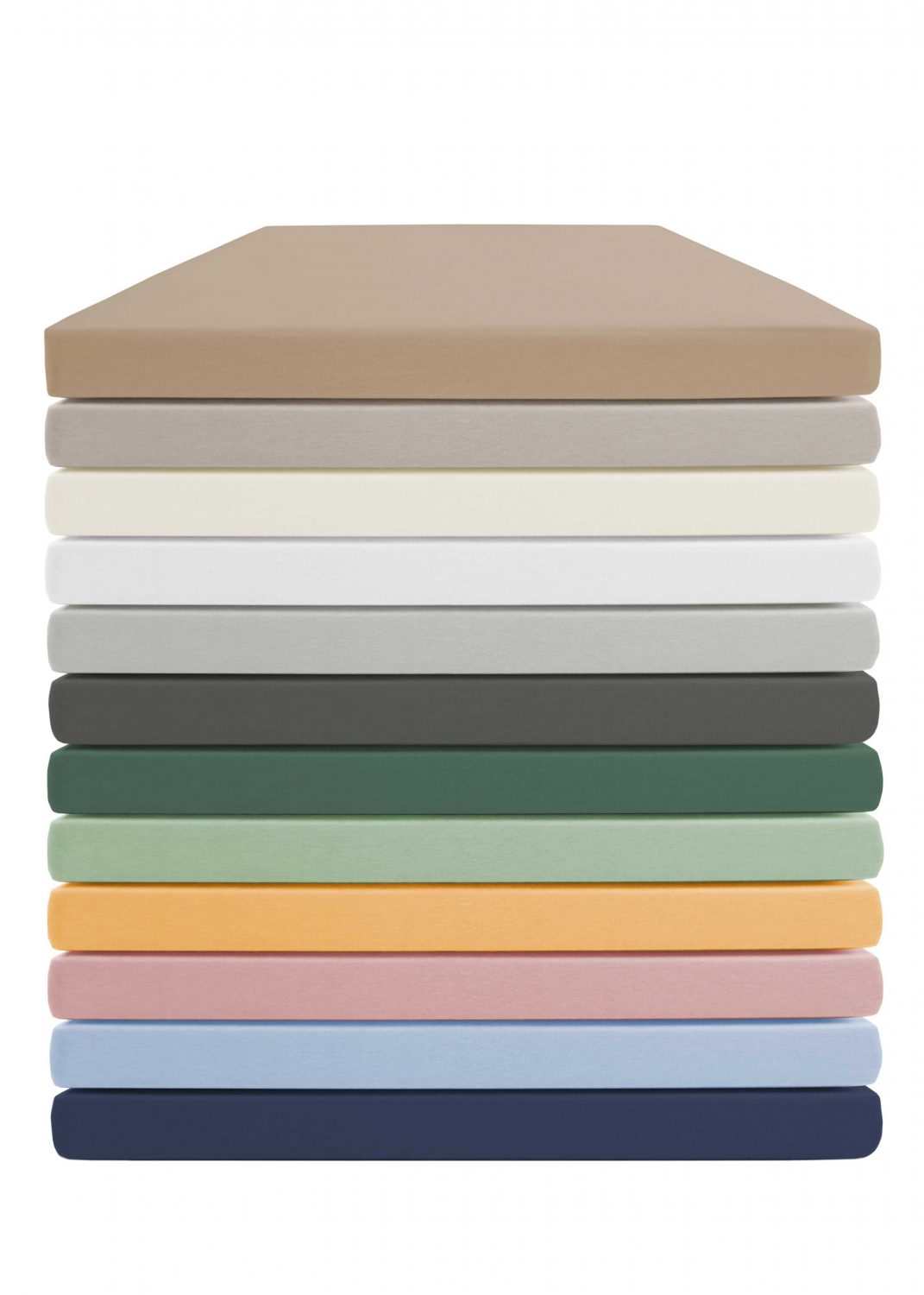 Das Topper Fixleintuch mit GOTS zertifiziertem Jersey und Elastan ist geeignet für eine Matratzenhöhe von 10 cm bzw. Steghöhe von 20 cm. In verschiedenen Farben und Grössen erhältlich.