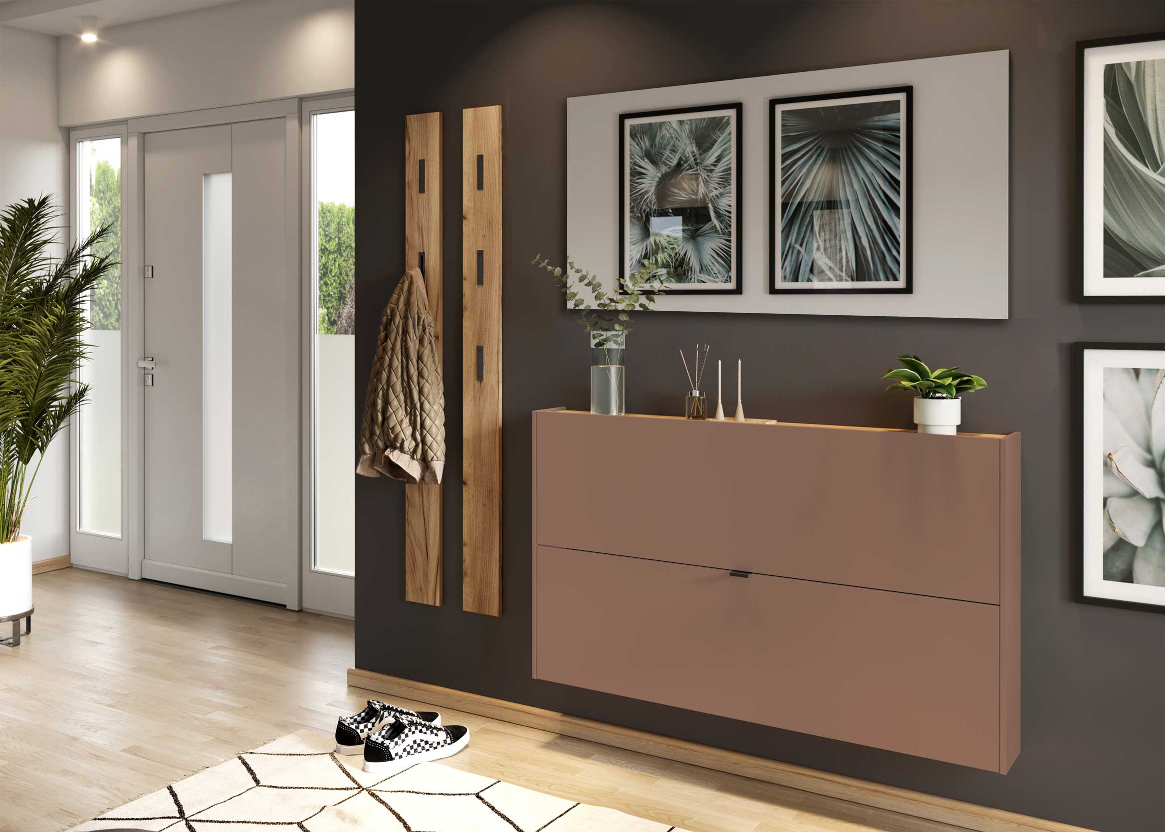 Der Schuhschrank bietet Platz für 12 Paar Schuhe.