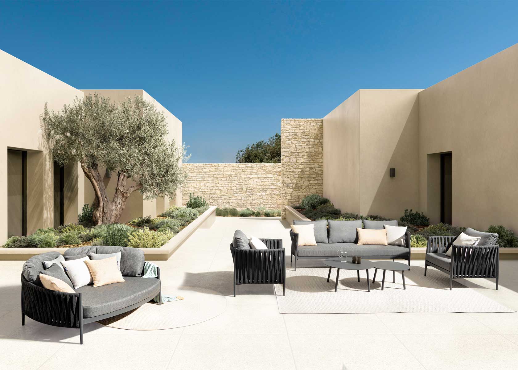 Kissenbezüge bestehen aus einem wasserabweisendem Oelfin-Stoff.