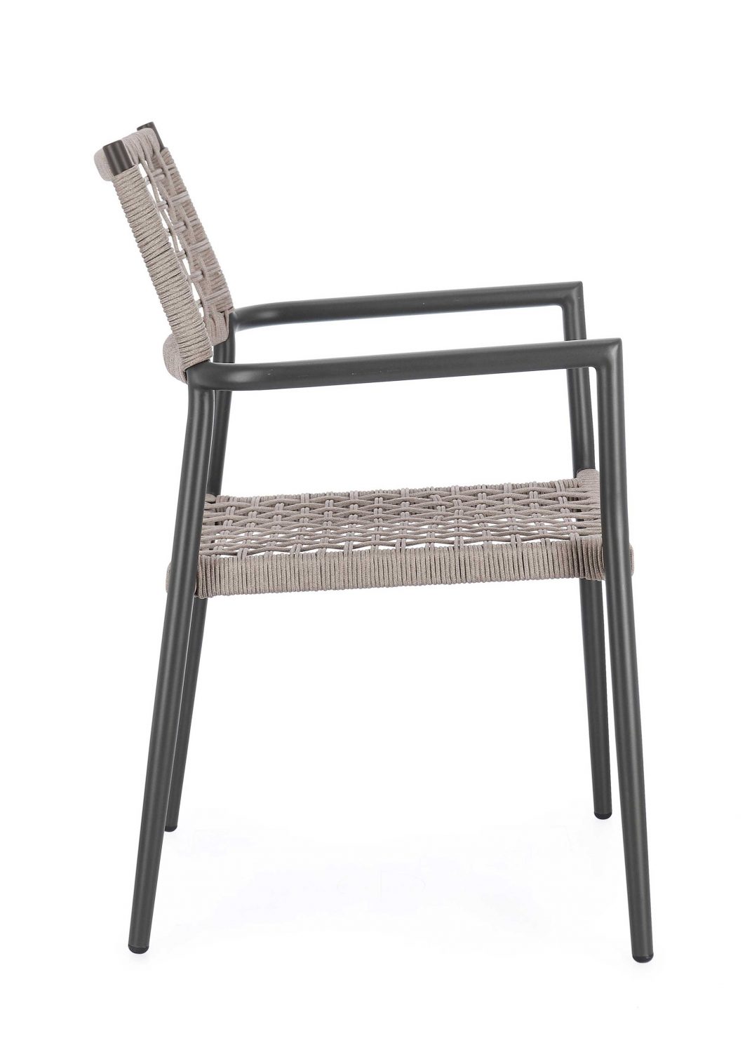 Der Caleta Gartenstuhl ist dank dem pulverbeschichteten Aluminiumgestell und unempfindlichem Polyesterseil für den überdachten Aussenbereich geeignet.
