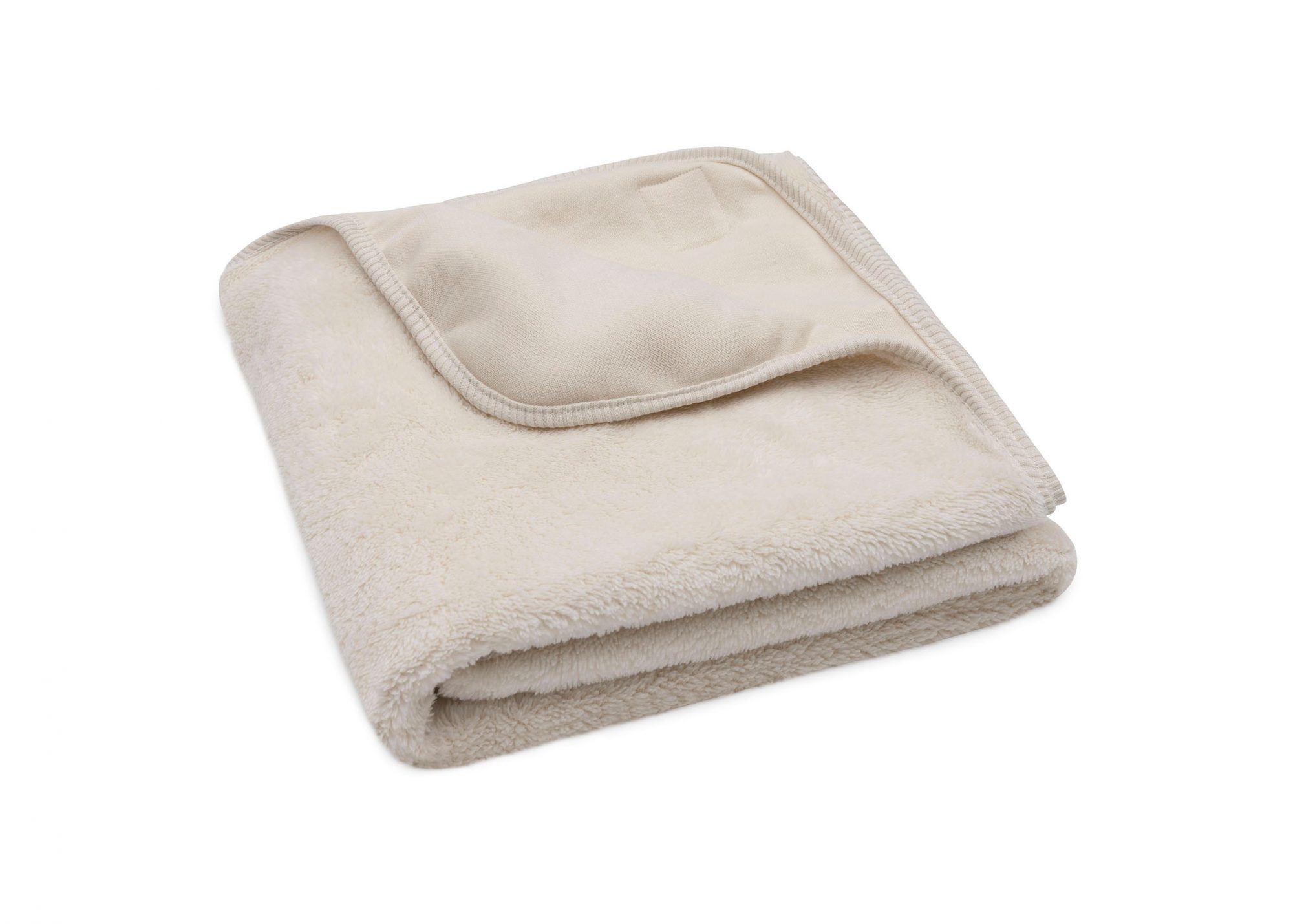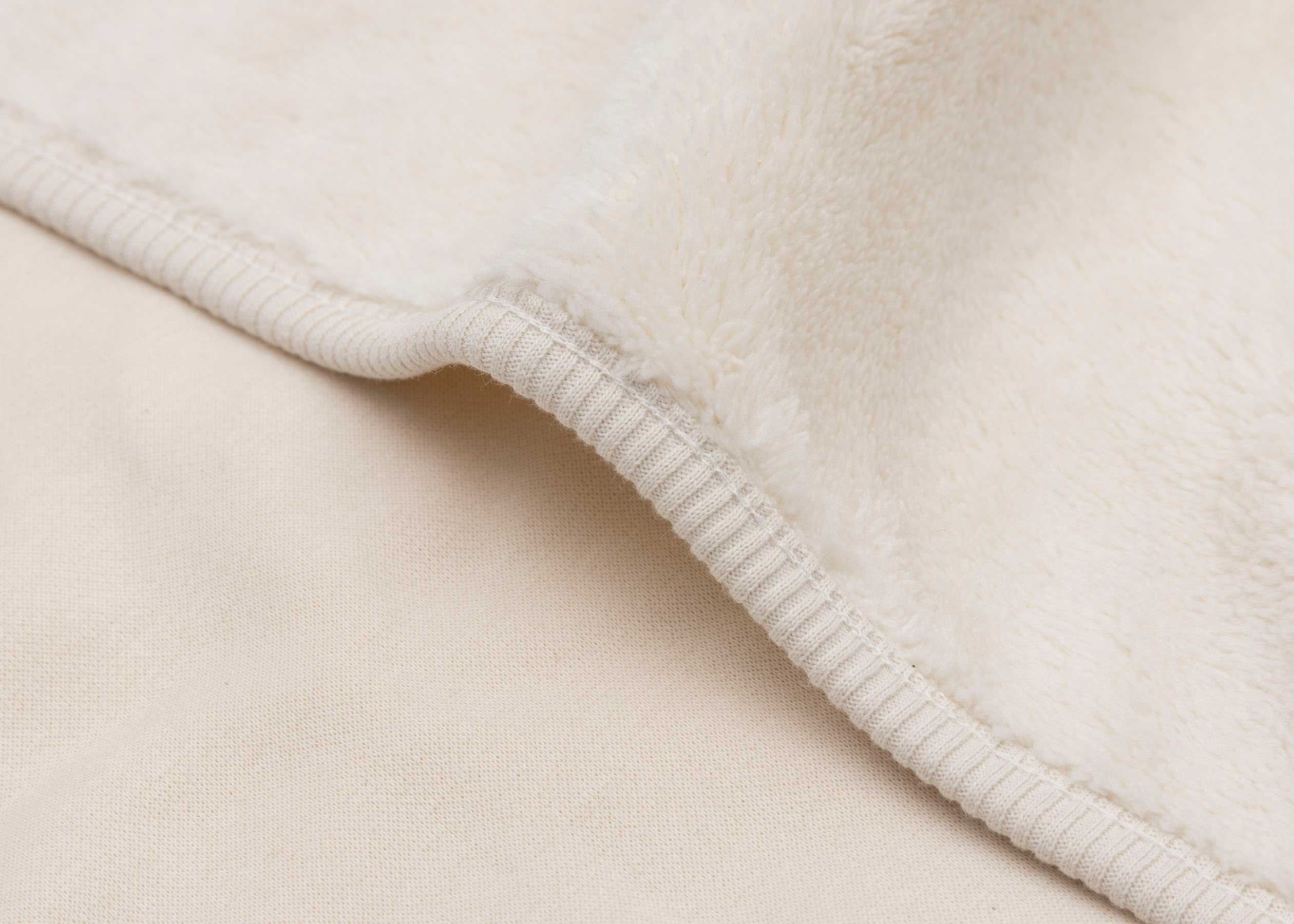 Die Aussenseite der Babydecke besteht aus geschmeidigem Jersey, die Innenseite aus kuscheligem Sherpa. Die Decke ist doppellagig und beidseitig verwendbar. Waschbar bei 30°C.