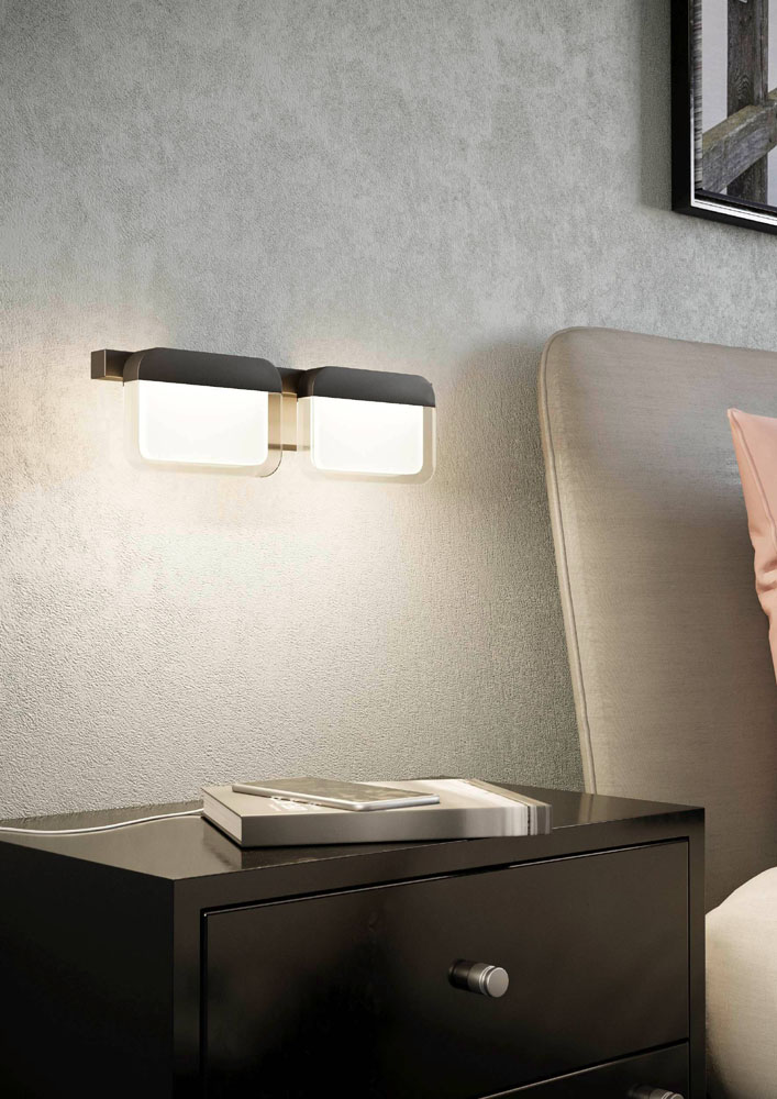 LEDs spenden angenehmes warmweisses Licht und sind über einen passenden Drehdimmer an der Wand dimmbar.