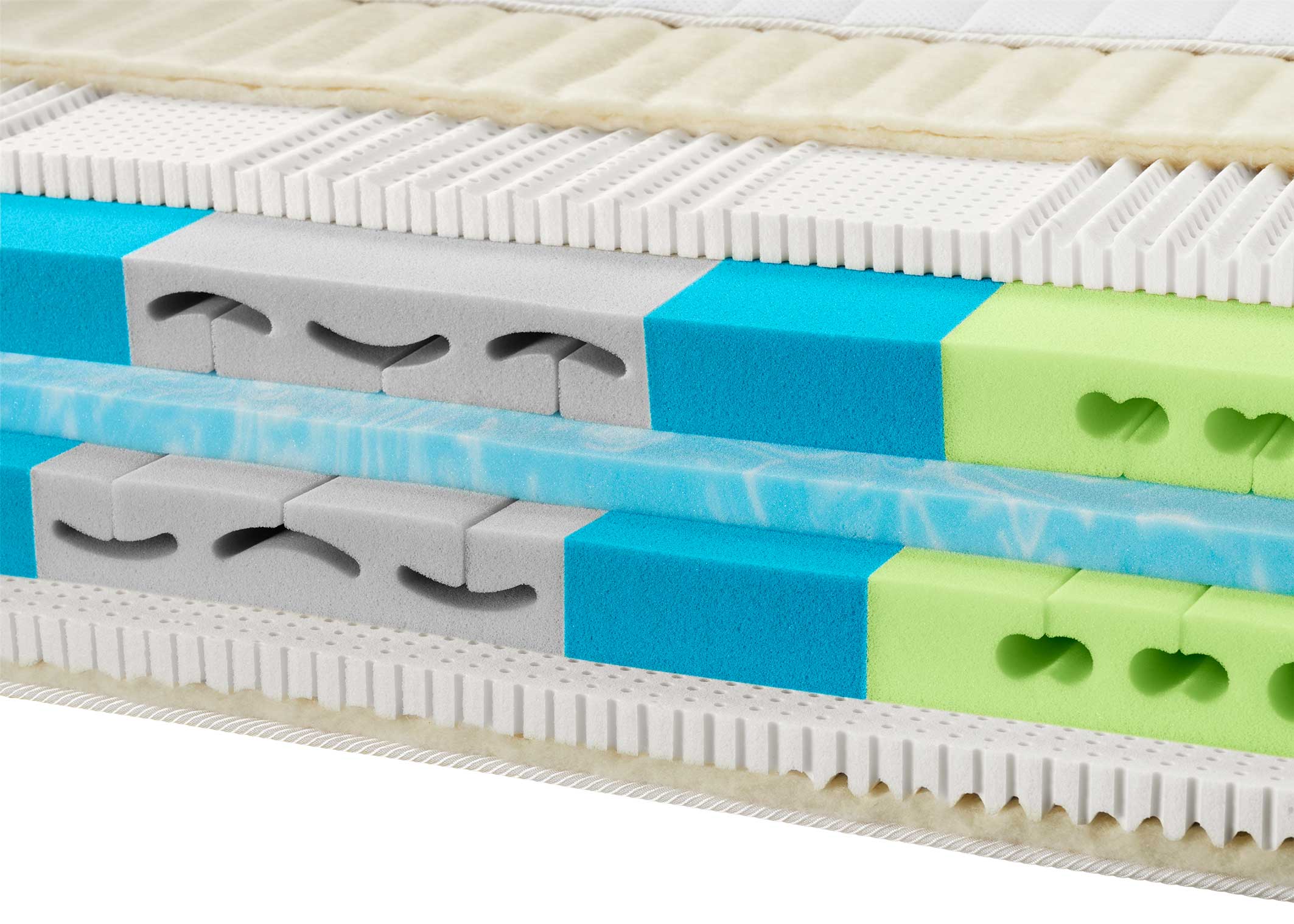Die abgestimmte Lendenwirbelstütze und Beckenzone sorgen für eine optimale Ausbalancierung von Gesäss und Rücken. Für Seitenschläfer ist ein sanftes Einsinken in Seitenlage dank hochelastischer