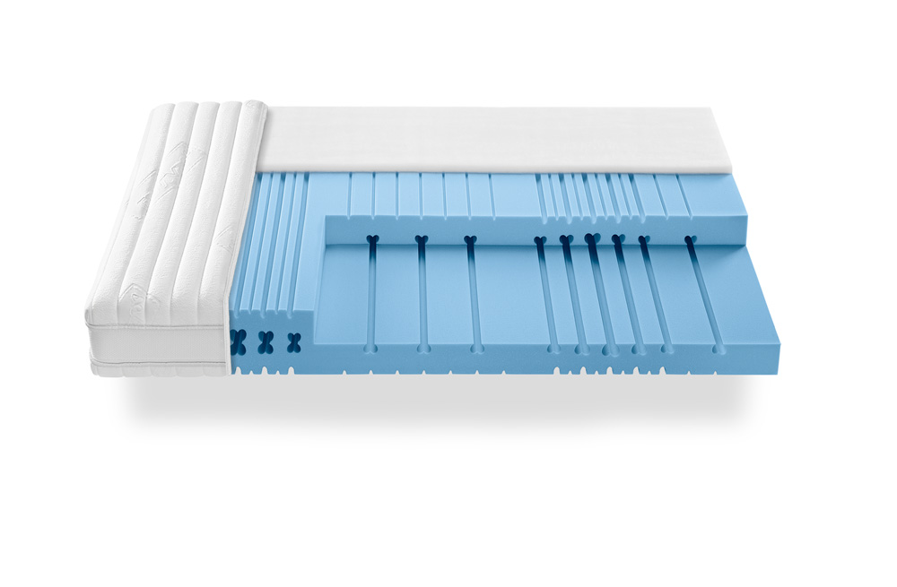 Die Roviva Matratze verfügt über einen hochflexiblen Mehrzonenkern aus atmungsaktivem Porotex mit Luftzellstruktur. Der druckentlastende