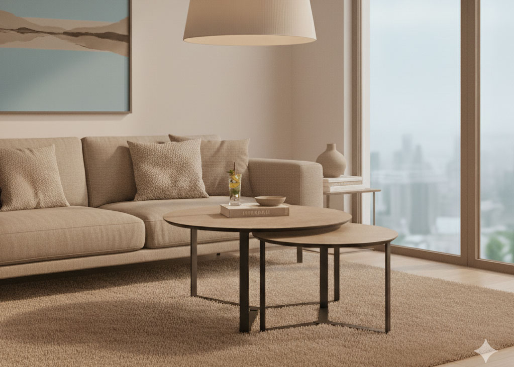 Die beiden Couchtische haben folgende Masse: BxHxT = 60x40x60 cm & 80x45x80 cm.