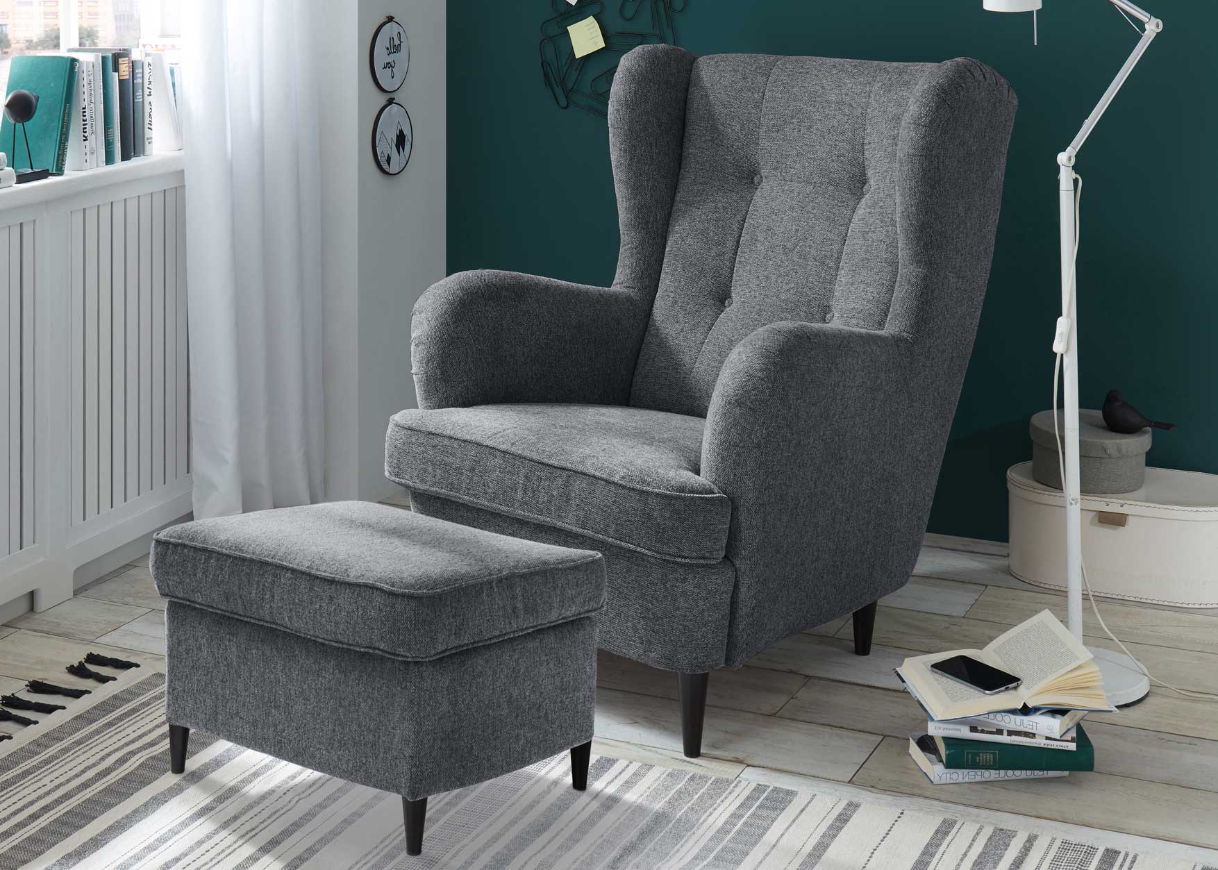Der Oskar Sessel mit passendem Hocker (63x43x42 cm) ist in weiteren schönen Farben erhältlich um dein Zuhause stilvoll einzurichten.